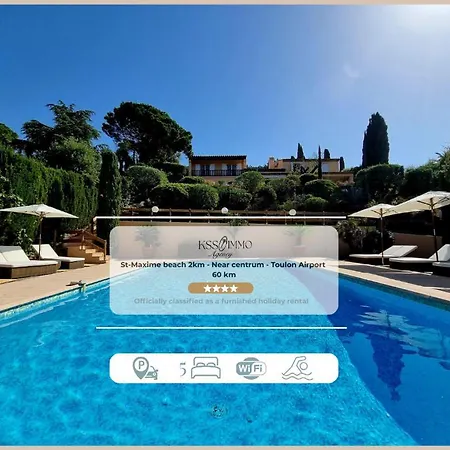 Die 2-Zimmer- Villa 4 Etoiles - Parking - Wifi - Clim - Piscine Sainte-Maxime liegt in etwa 3 km Entfernung vom Botanischen Garten und verfügt über eine Terrasse, von der aus man einen Küsten- Blick aufs Meer hat.
